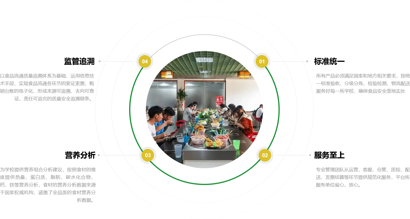 AYX愛游戲校園營養(yǎng)餐聚焦中小學(xué),著眼公共食堂食品安全,依托標(biāo)準(zhǔn)的運營與嚴格的管理,以數(shù)字化食安監(jiān)管平臺為核心,確保食材供應(yīng)實現(xiàn)全溯源、全檢測, 保障食品安全,用心關(guān)愛學(xué)生每一餐。